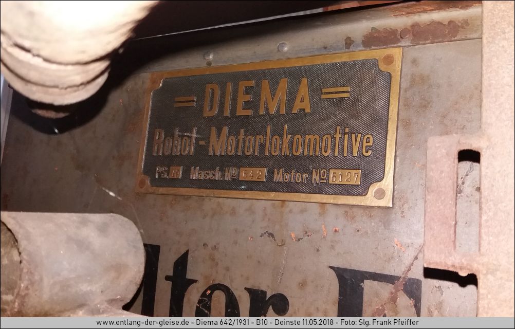 übernommen und die Diema wurde als Lok "8" bezeichnet.