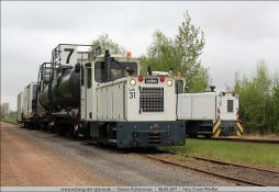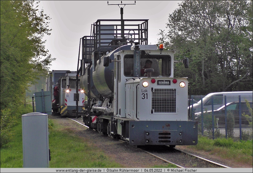 Morgen verlässt der Kesselwagen-Zug mit Lok 31 (Schöma 6600/2012)