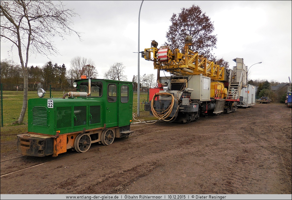 Workover-Anlagen zu den Arbeitsstellen im Moor. Hier steht Lok 22 (Schöma