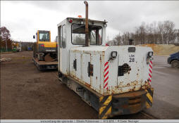 | 1.4 1.5 Weniger Last hat Lok 28 (Schöma 5377/1993, Typ CHL 30G) am Haken: Der Tieflader mit der Betriebsnummer 30 hat einen 5,3 Tonnen schweren Kettenbagger vom Typ Volvo EC55B geladen. |