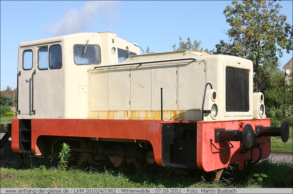 15749 Mittenwalde | Hersteller: LKM I Fabrik-Nr.: 261 204/1962 I Typ: V 18 B I mehr zur Lok |