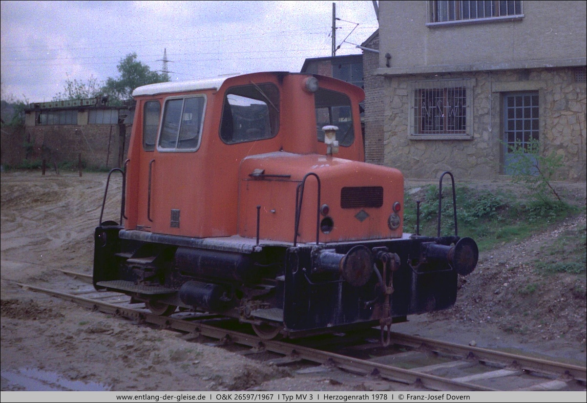 52134 Herzogenrath | Hersteller: Orenstein & Koppel I Fabrik-Nr.: 26597/1967 I Typ: MV 3 I mehr zur Lok |