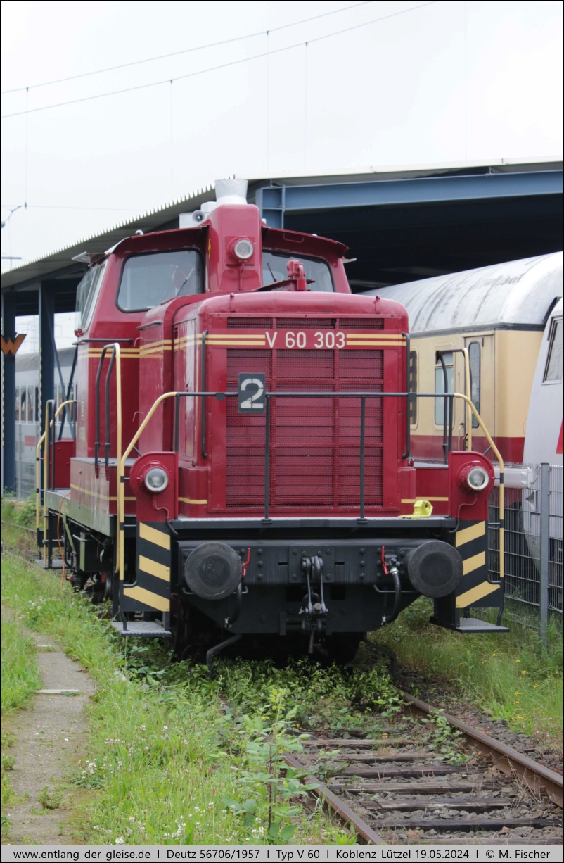 56070 Koblenz | Hersteller: Deutz I Fabrik-Nr.: 56706/1957 I Typ: V 60 I mehr zur Lok |