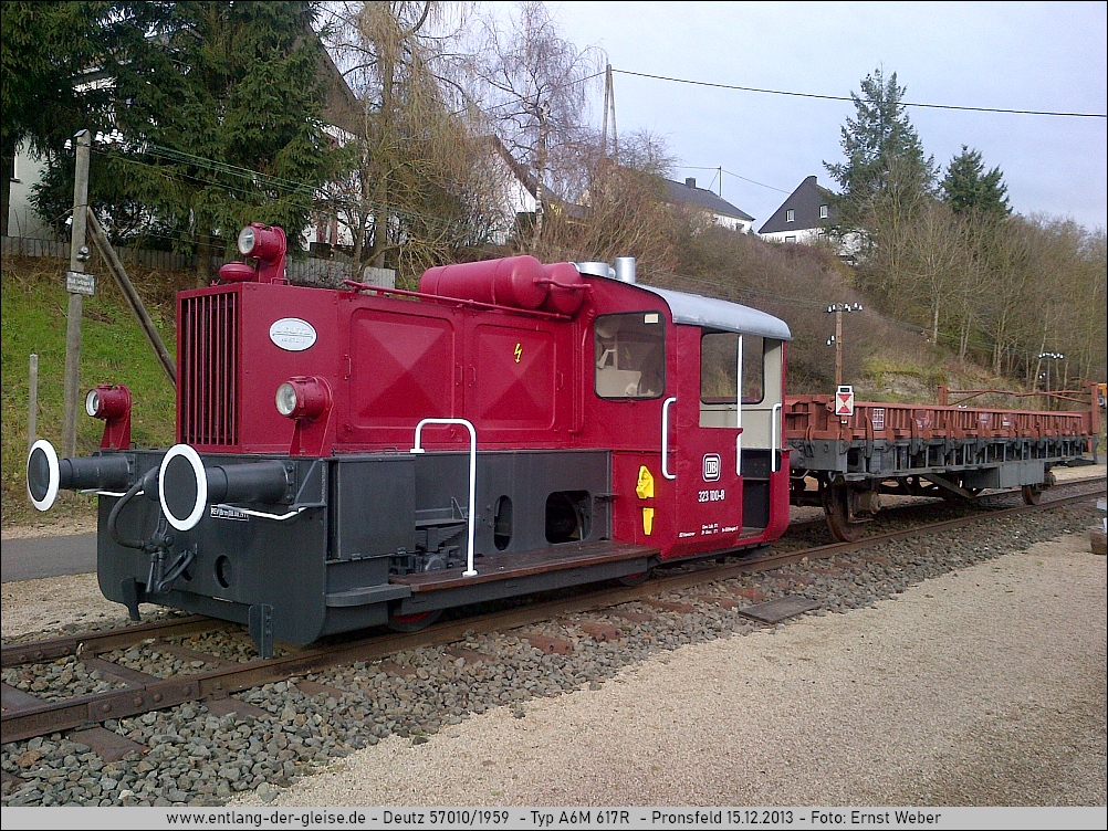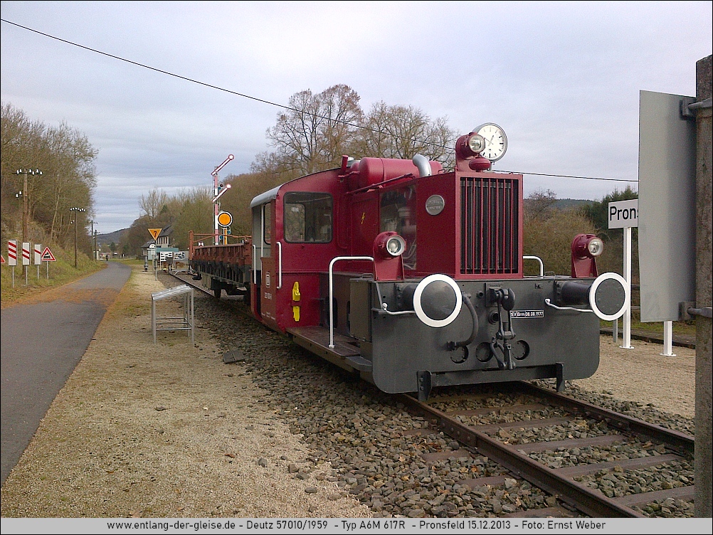 54597 Pronsfeld | Hersteller: Deutz I Fabrik-Nr.: 57010/1959 I Typ: A6M 617 R I mehr zur Lok |