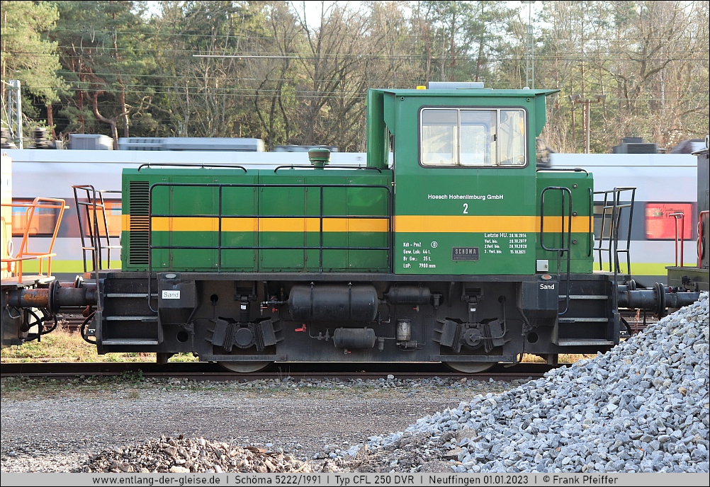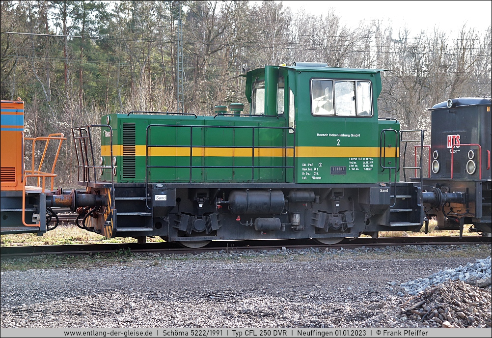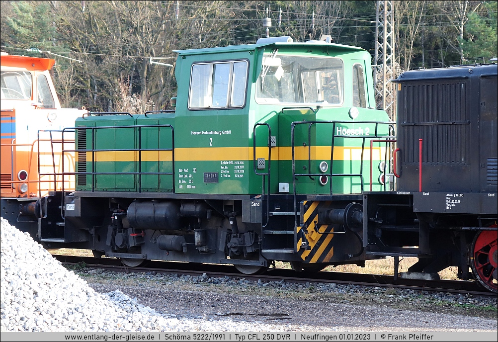 89362 Offingen-Neuoffingen | Hersteller: Schöma I Fabrik-Nr.: 5222/1991 I Typ: CFL 250 DVR I mehr zur Lok |