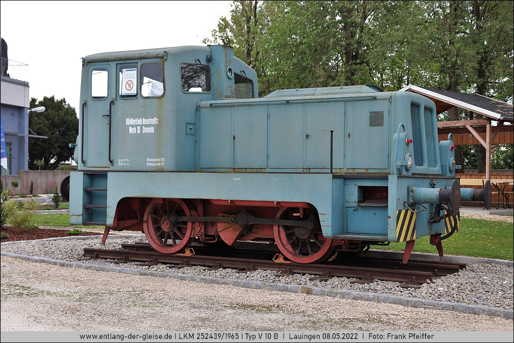 89415 Lauingen | Hersteller: LKM I Fabrik-Nr.: 252439/1965 I Typ: V 10 B I mehr zur Lok |