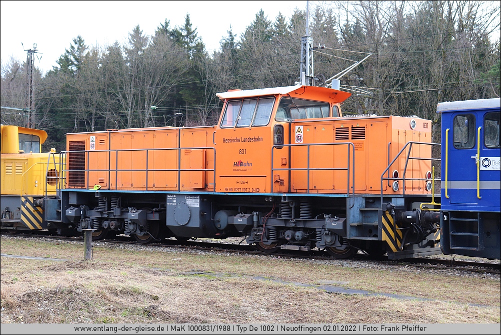 89362 Offingen-Neuoffingen | Hersteller: MaK I Fabrik-Nr.: 1000831/1988 I Typ: DE 1002 I mehr zur Lok |