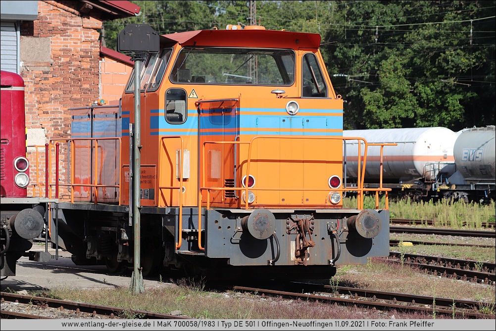 89362 Offingen-Neuoffingen | Hersteller: MaK I Fabrik-Nr.: 700058/1983 I Typ: DE 501 I mehr zur Lok |
