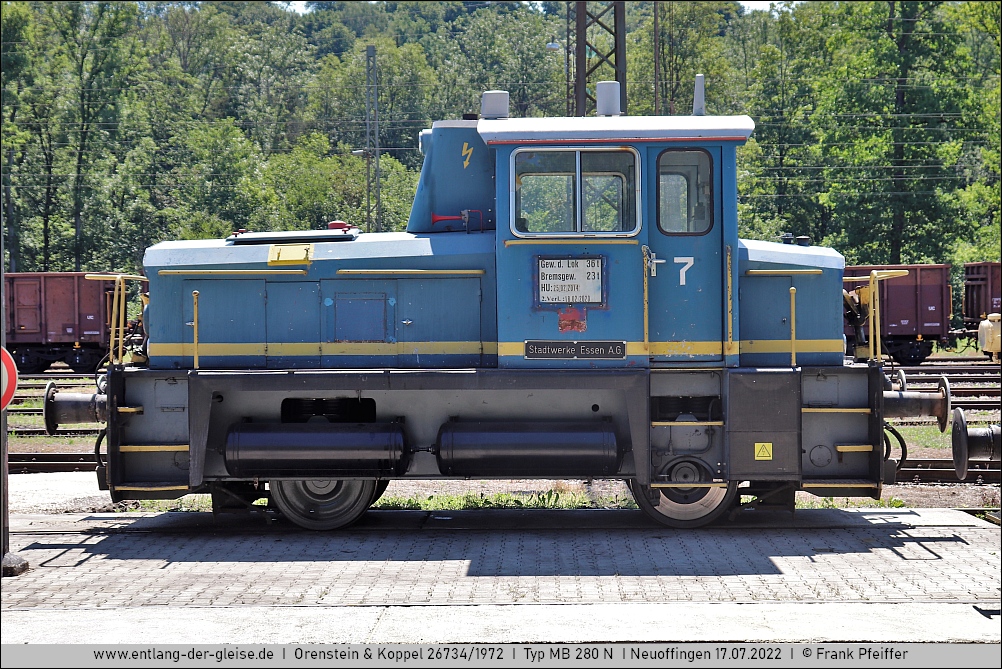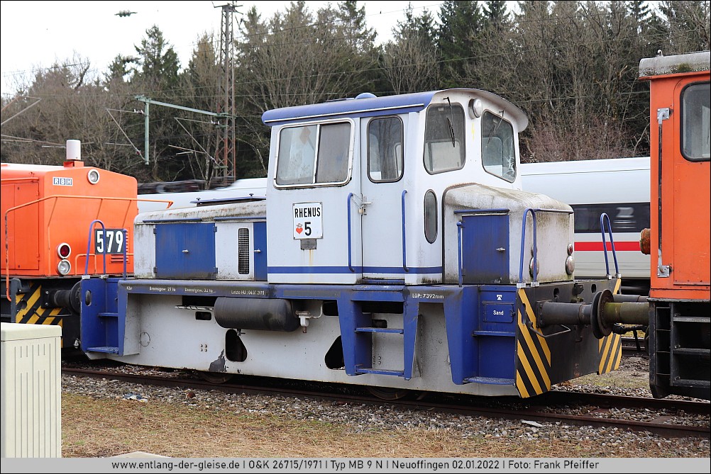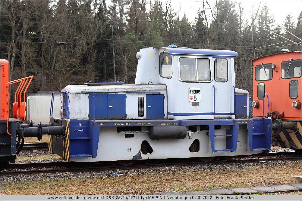 89362 Offingen-Neuoffingen | Hersteller: Orenstein & Koppel I Fabrik-Nr.: 26715/1971 I Typ: MB 9 N I mehr zur Lok |