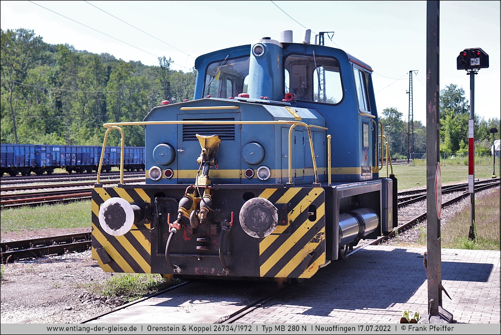 89362 Offingen-Neuoffingen | Hersteller: Orenstein & Koppel I Fabrik-Nr.: 26734/1972 I Typ: MB 280 N I mehr zur Lok |