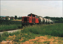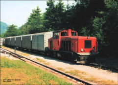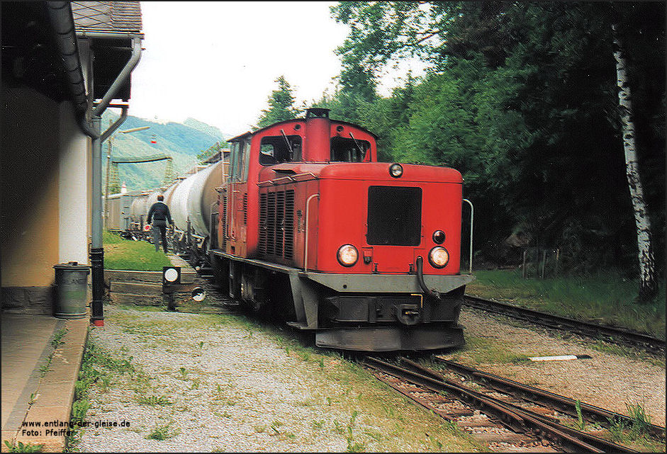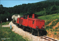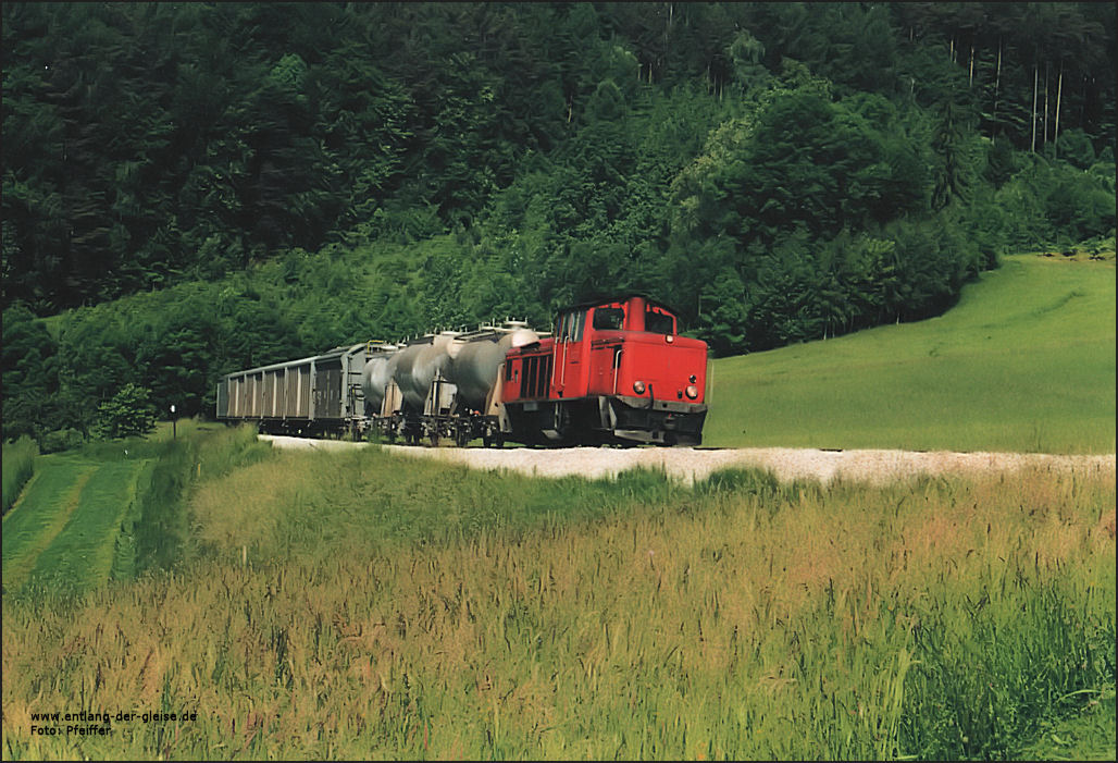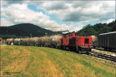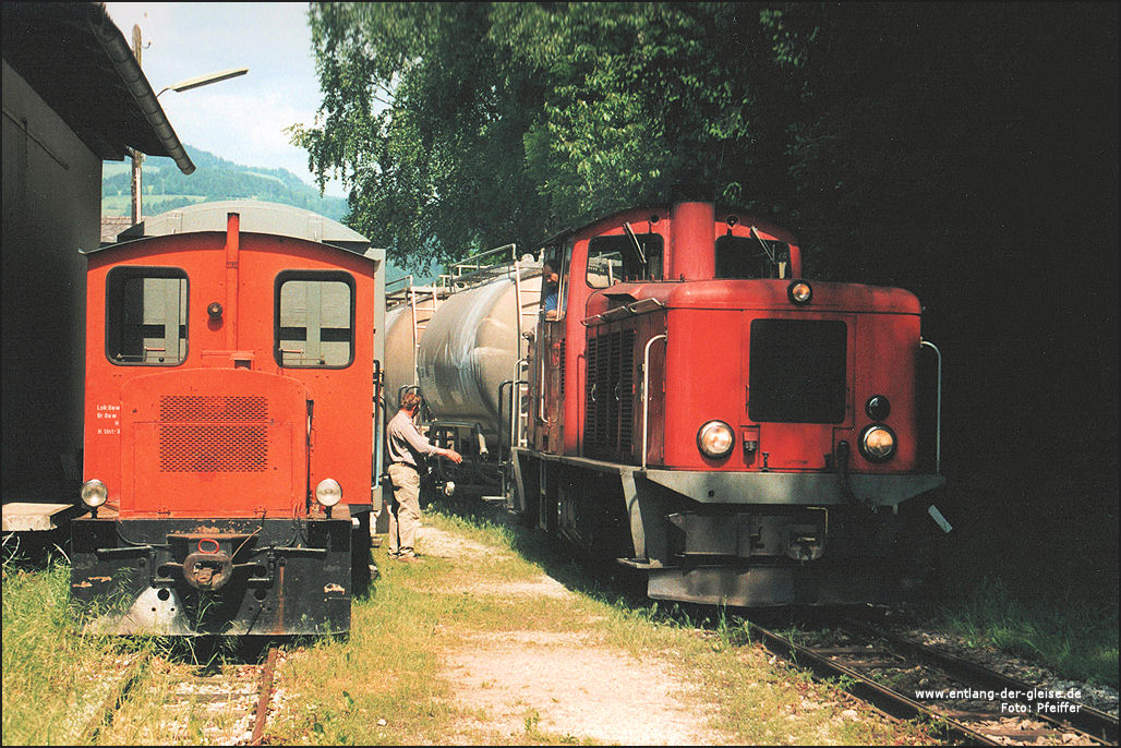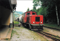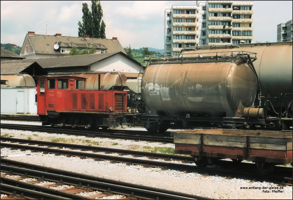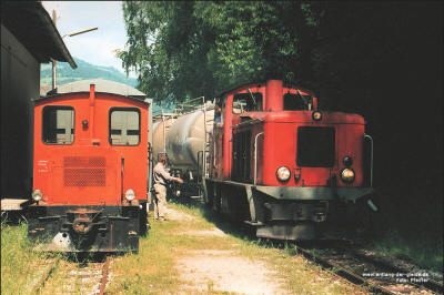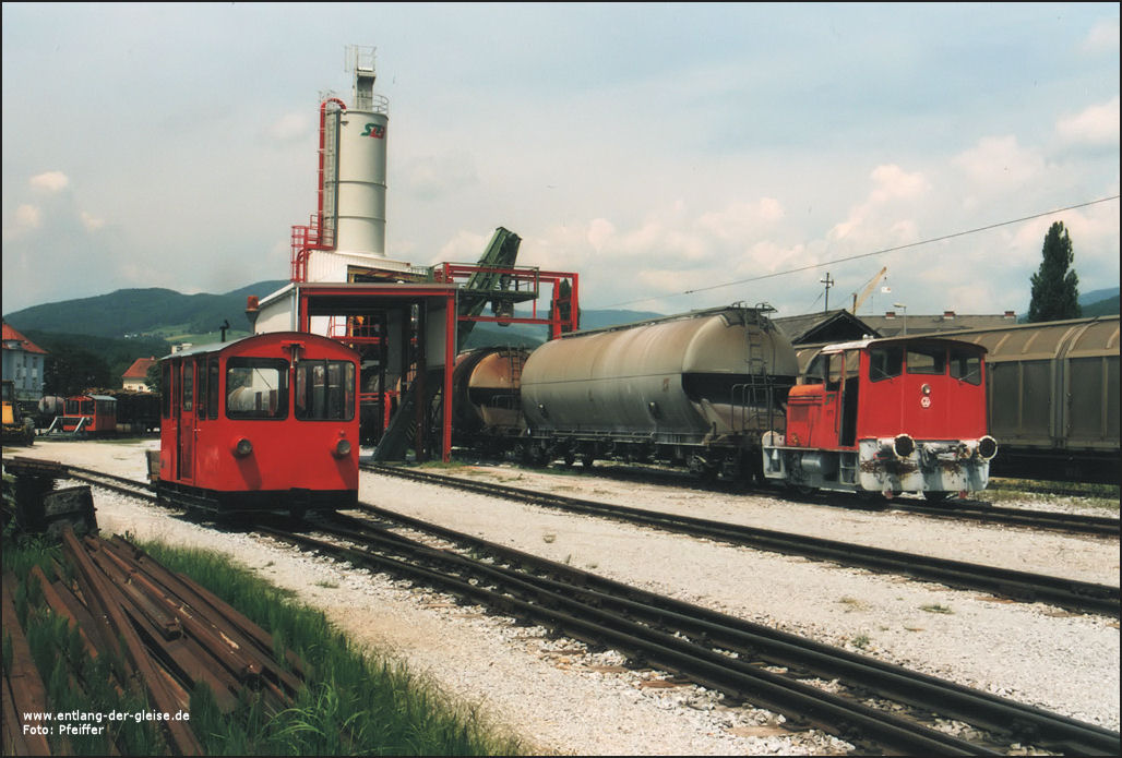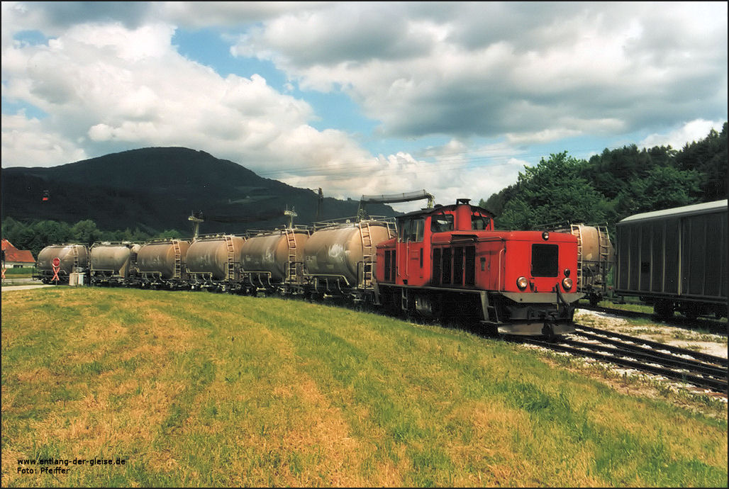 Ersatzteilspender. 2 Aus der gleichen Baureihe stammt die VL 15, die während des Besuchszeitraumes den Streckenverkehr übernahm. Noch im selben Jahr wurde auch diese Lok außer Dienst gestellt und durch aufgearbeitete, aus Jugoslawien stammende Maschinen ersetzt. 3 Die Gmeinder 3990, eine 1942 mit der Fabriknummer 3990 gebaute HF130C, war bis 1971 bei der Papierfabrik Rechberg beheimatet. Von dort kauften die Steiermärkischen Landesbahnen die Lok 1971, gaben ihr die Betriebsnummer VL 4 und setzten sie als Rangierlok im Bahnhof Weiz ein. Eben dort wurde sie auch fotografiert. 2002 wurde sie schließlich an Privat verkauft. |