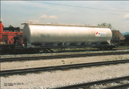 Anschlussgleis zum Magnesitwerk in Oberfeistritz. Sechs Silowagen