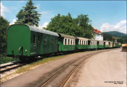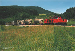 den durchgehenden Personenverkehr auf den nun 42,4 km auf. Die Schließung des Rattener Kohlenbergbaus im Jahr 1961 brachte der Feistritztalbahn starke Einbußen. Zwischen Birkfeld und Ratten wurde 1971 der Personen- und 1980 auch der Güterverkehr eingestellt. Auf dem Abschnitt Weiz – Birkfeld endete 1973 der reguläre Personenverkehr und ab 1995 betrieben die Steiermärkischen Landesbahnen nur noch das Stück Weiz – Oberfeistritz, während die Feistritztalbahn-Betriebs-GmbH die 1971 eingeführten Dampfbummelzüge und so auch die Fortsetzung Oberfeistritz – Birkfeld weiterbetreibt. Wichtigster Kunde im Güterverkehr der StLb war das Talkumwerk in Oberfeistritz, dessen Waren in Weiz alle auf Regelspurfahrzeuge umgeladen werden mussten, da die Schmalspurstrecke für Rollbock- oder Rollwagen-Verkehr nicht geeignet ist. Dieser Güterverkehr endet im im August 2015. Seitdem organisiert der Club "U44, Freunde der Feistritztalbahn" historischen Personenverkehr auf einem Teilstück Strecke. Die folgenden Aufnahmen entstanden bei hochsommerlichem Wetter am 26. und 27. Mai 1999. Alle Fotos können zum Vergrößern angeklickt werden. |
