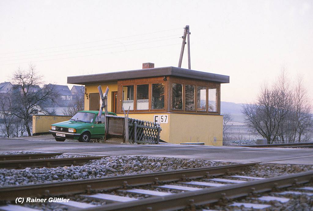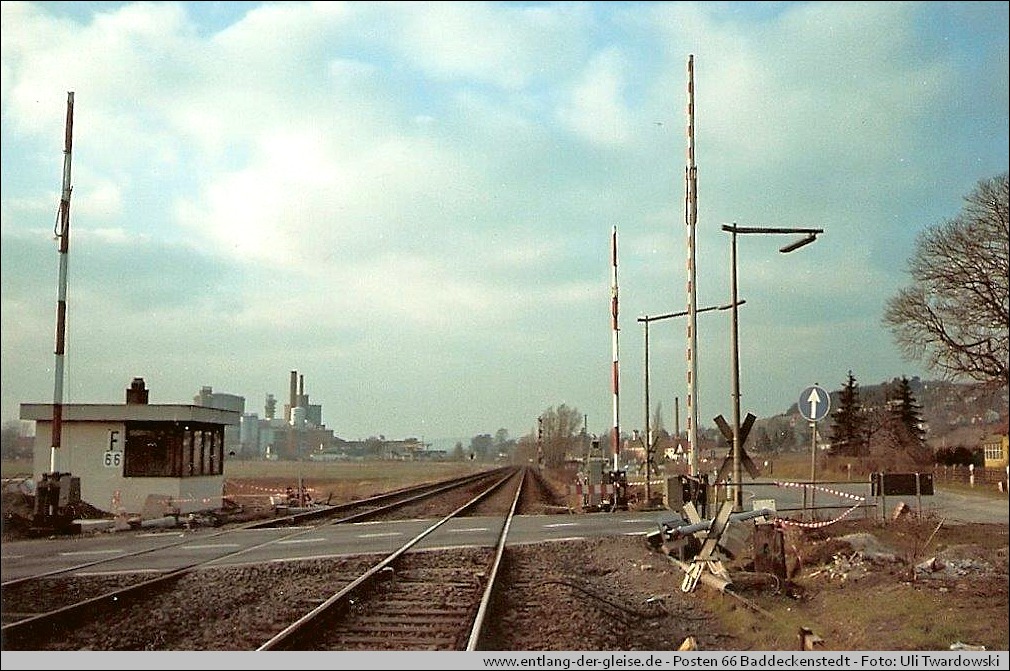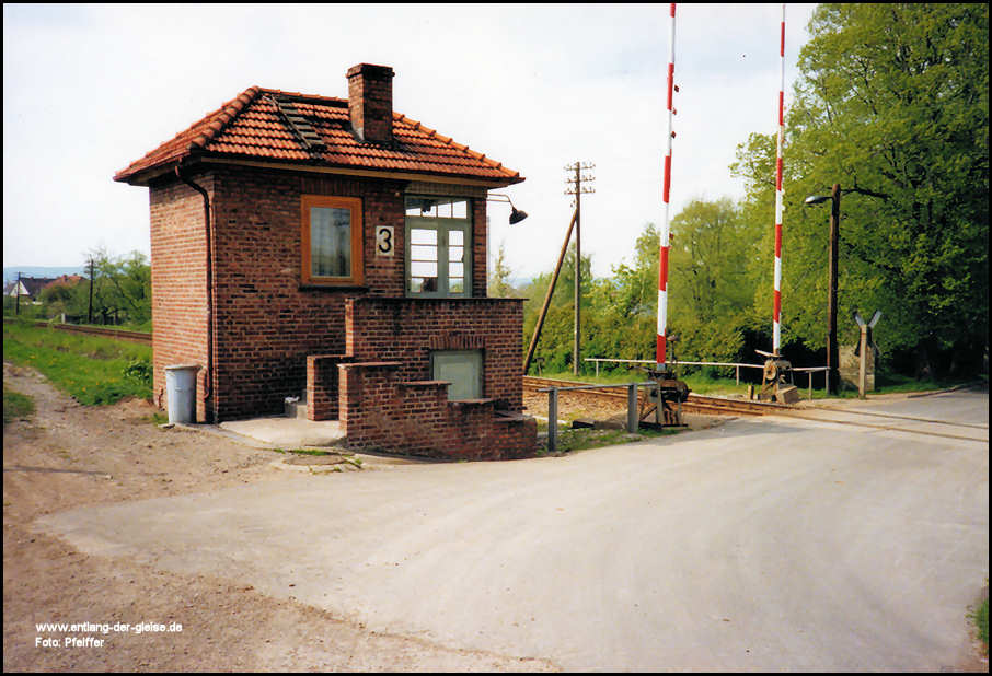 Eisenbahn. Ersetzt durch automatische Schrankenanlagen oder aufgelöst
