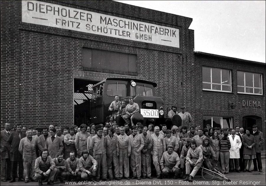 Gruppenfoto wert. Die Lok vom Typ DVL 150/1.7 wurde 1974 an die