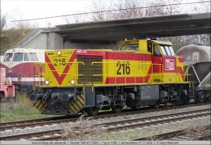 Am 24.10.2104 rangiert die Maschine im Hafenbahnhof Cuxhaven. |